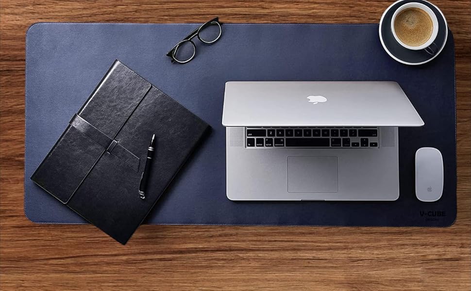 V-CUBE DESIGNS Combo product is an excellent desk accessory made with high quality Vegan leather. Stitched Edge, Handmade (2mm Thickness) for Laptop, Computer and PC Wireless Mouse.